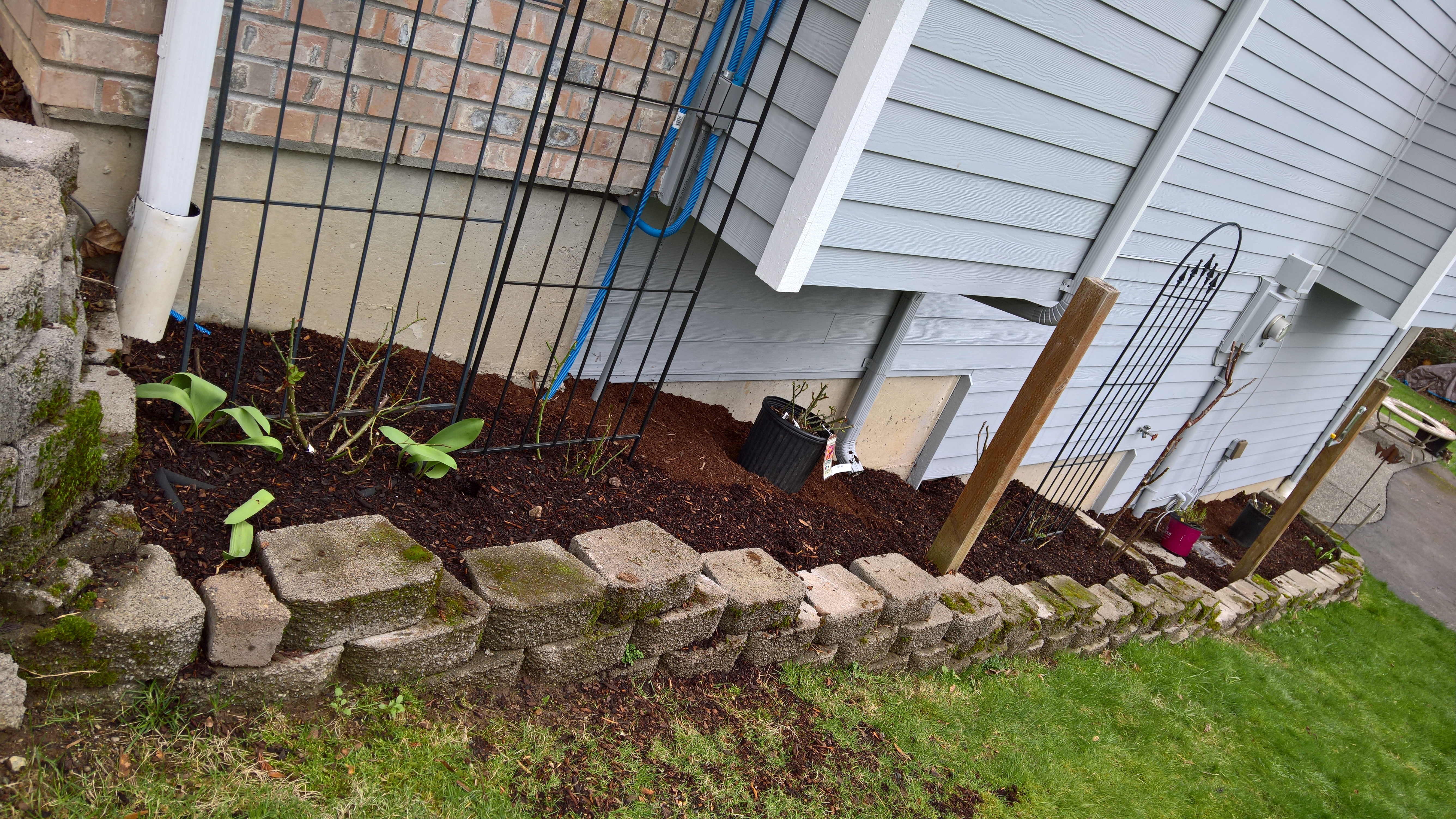 I have a flower bed on the south side of the house that gets lots of sun that I’m dedicating completely to roses. There are three rose bushes that were already at this house when we bought it that I have moved into this bed. Last summer, I bought three climbing bushes as I envision a wall of roses, that I had planted in this bed. And, about a month ago, I attended a rose class at a local nursery and brought home another three rose bushes – one carpet rose bush for the spot under a house overhang, one truly low or no maintenance rose bush and one regular long stem rose bush. I have a total of nine rose bushes in this garden bed. It’s going to be beautiful.