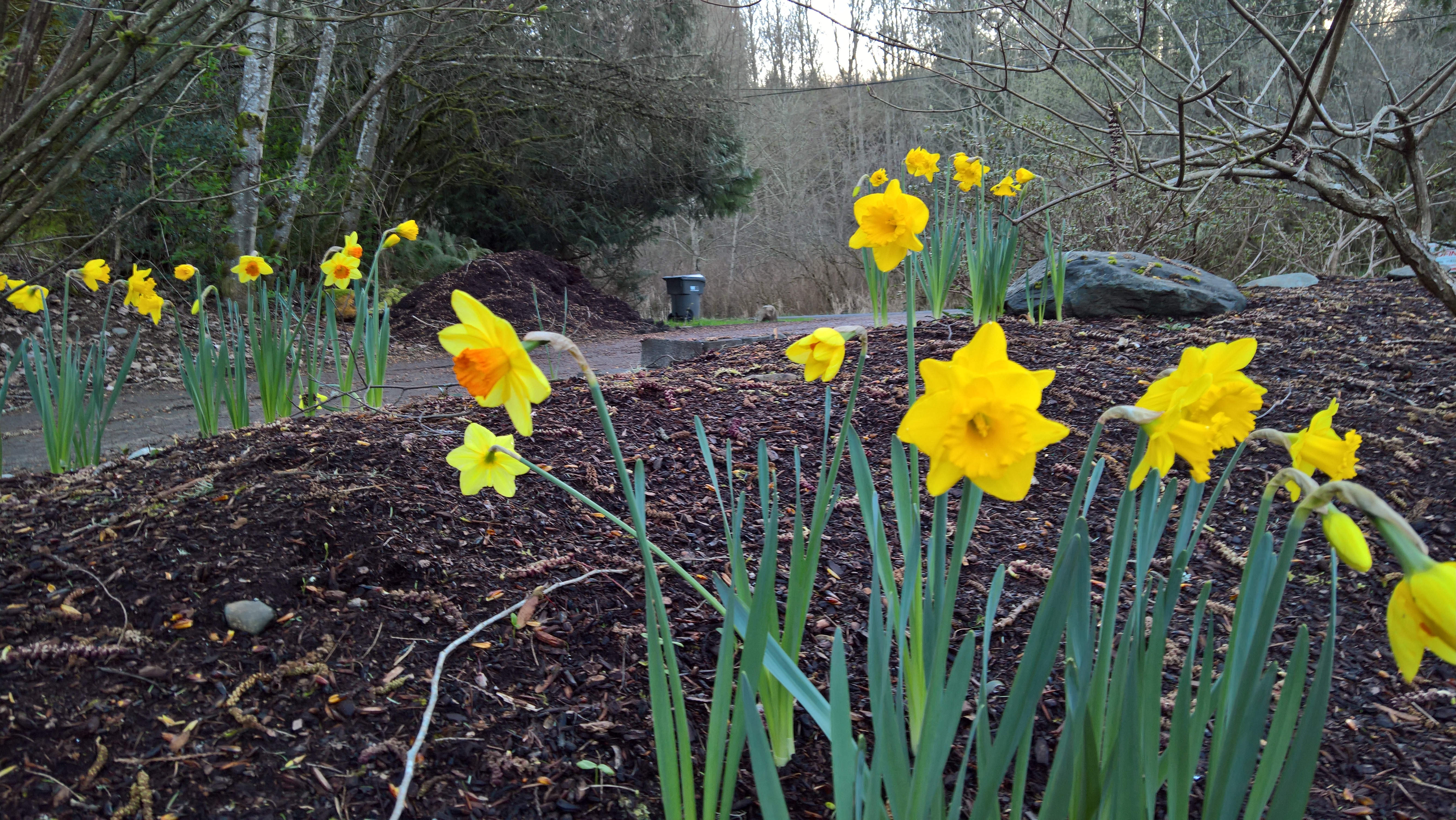 I love daffodils. They are so bright and perky and bloom so early in the year that they bring long anticipated cheer. Sunshine has entered my garden and thy name is daffodil. 🙂 I love them everywhere and so I planted 200 this last fall and here is my reward. What’s not to love? Aren’t they lovely?